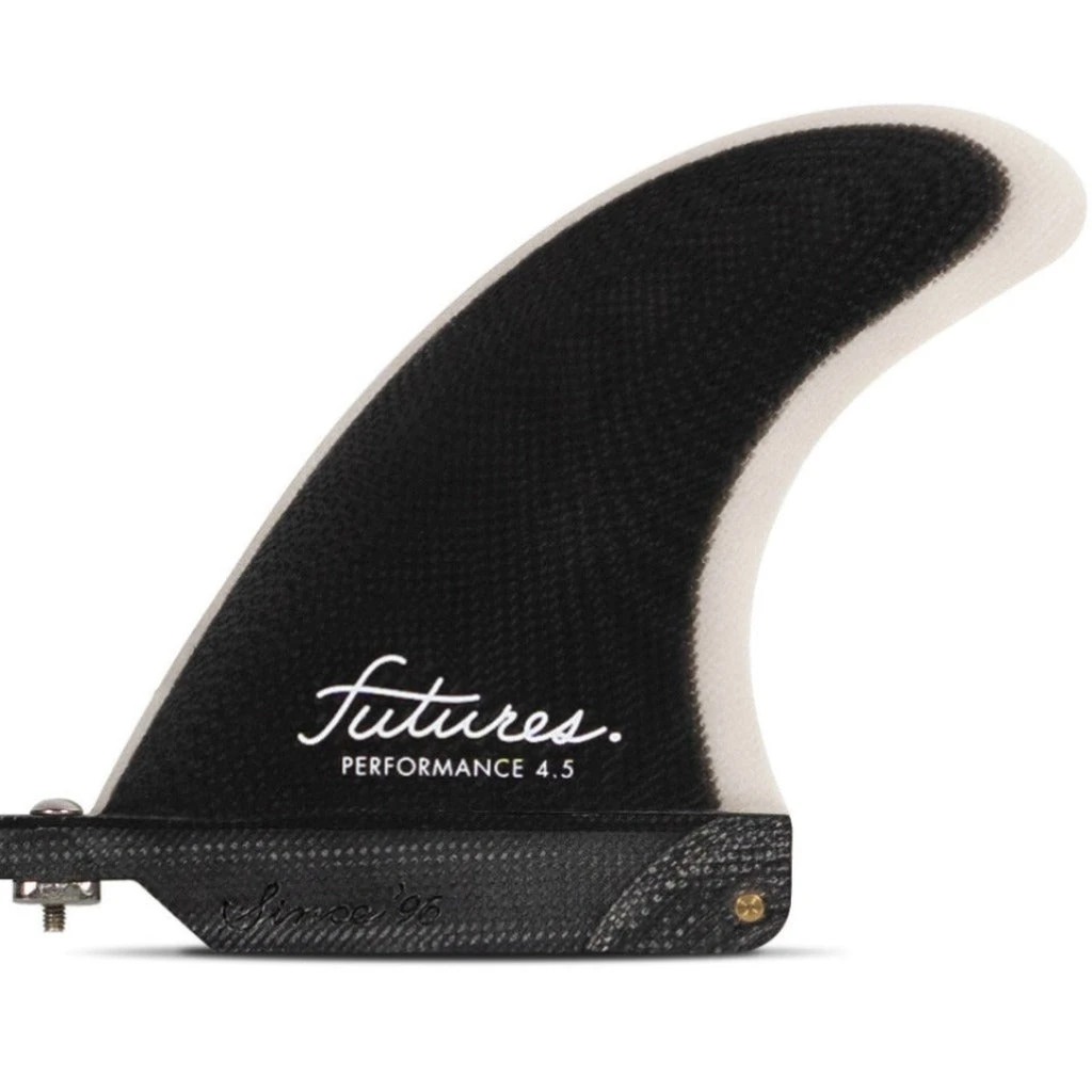 The Performance 4.5โ fin is made from a solid fiberglass panel, utilizes an all-around template shape and is to be ridden as a thruster, when combined with your favorite side fins.