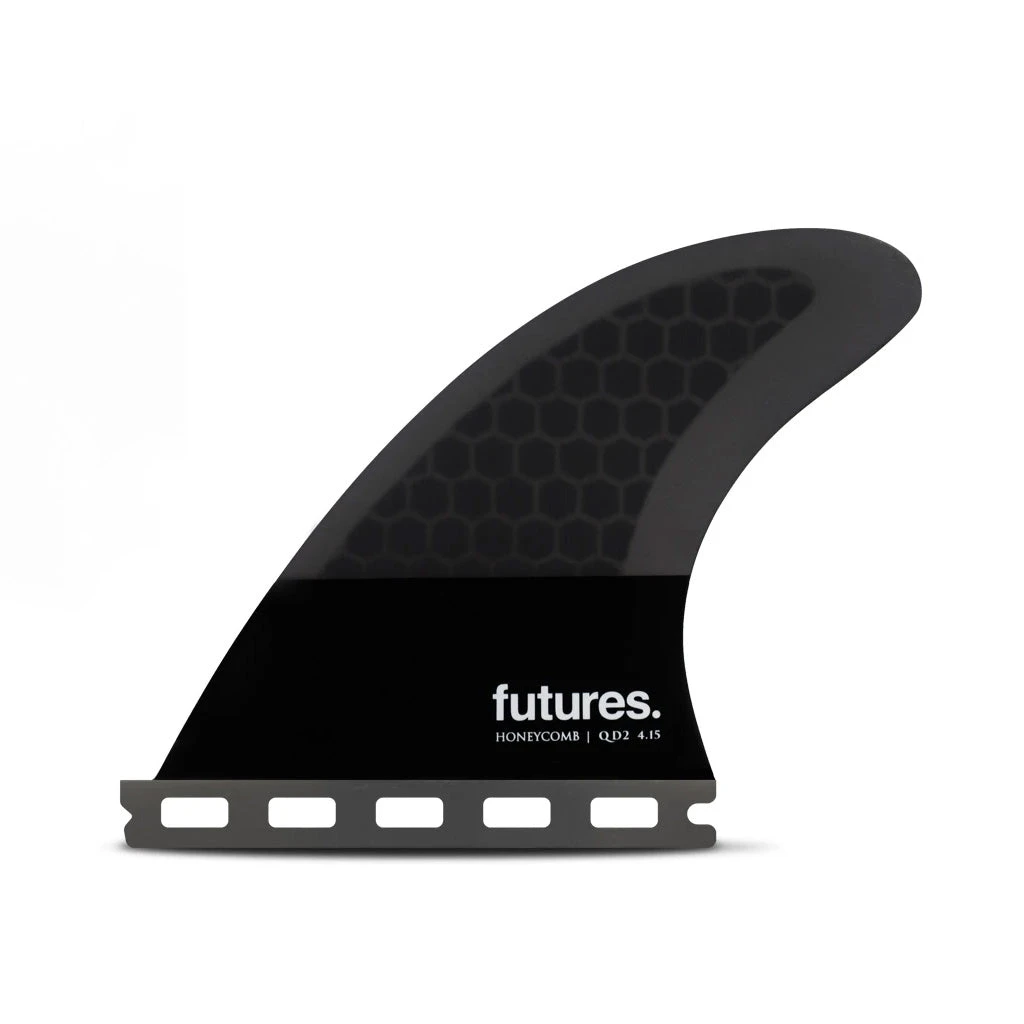 The QD2 4.15″ Flat is a large sized quad rear in Honeycomb construction. Looking to turn your favorite Thruster set into a Quad? This pair of Quad Rears can be combined with any Futures front fins to suit your riding preference, board design and waves. With a flat foil, these rears cater to quick direction changes and maneuverability. They will favor boards that have the rear boxes set toward the rail, away from the stringer.