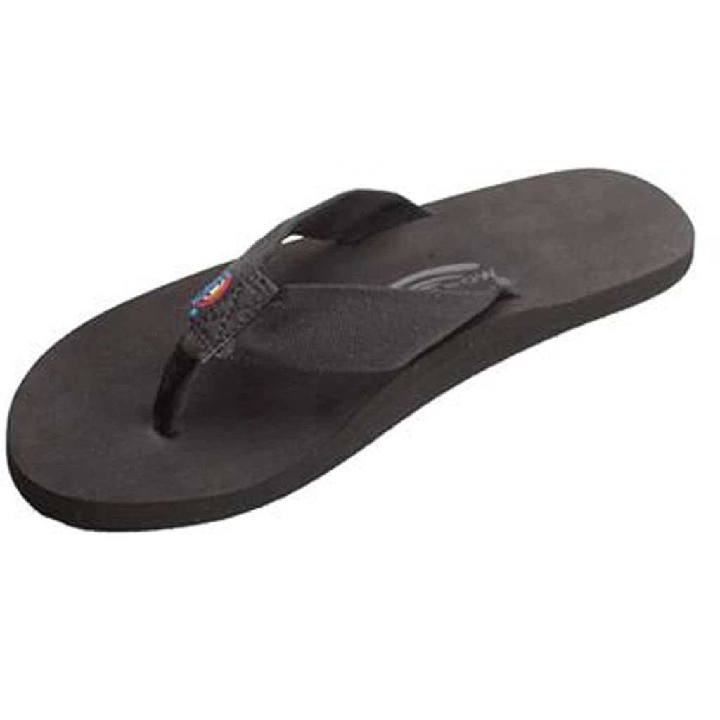The soft polyester strap is sewn with bonded nylon thread and features our box X toe piece construction. The Original Rainbow woven label is sewn to the right toe.