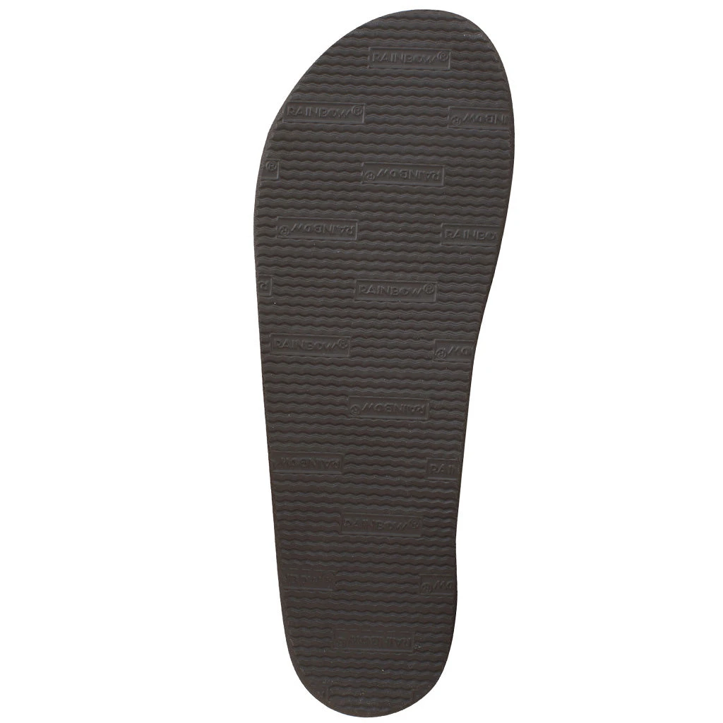The single layer mid sole and arch support is triple glued for maximum durability to our non-slip Rainbowยฎ bottom. We finish it off with the Original Rainbowยฎ woven label on the right strap, the mark of a genuine Rainbowยฎ Sandal.