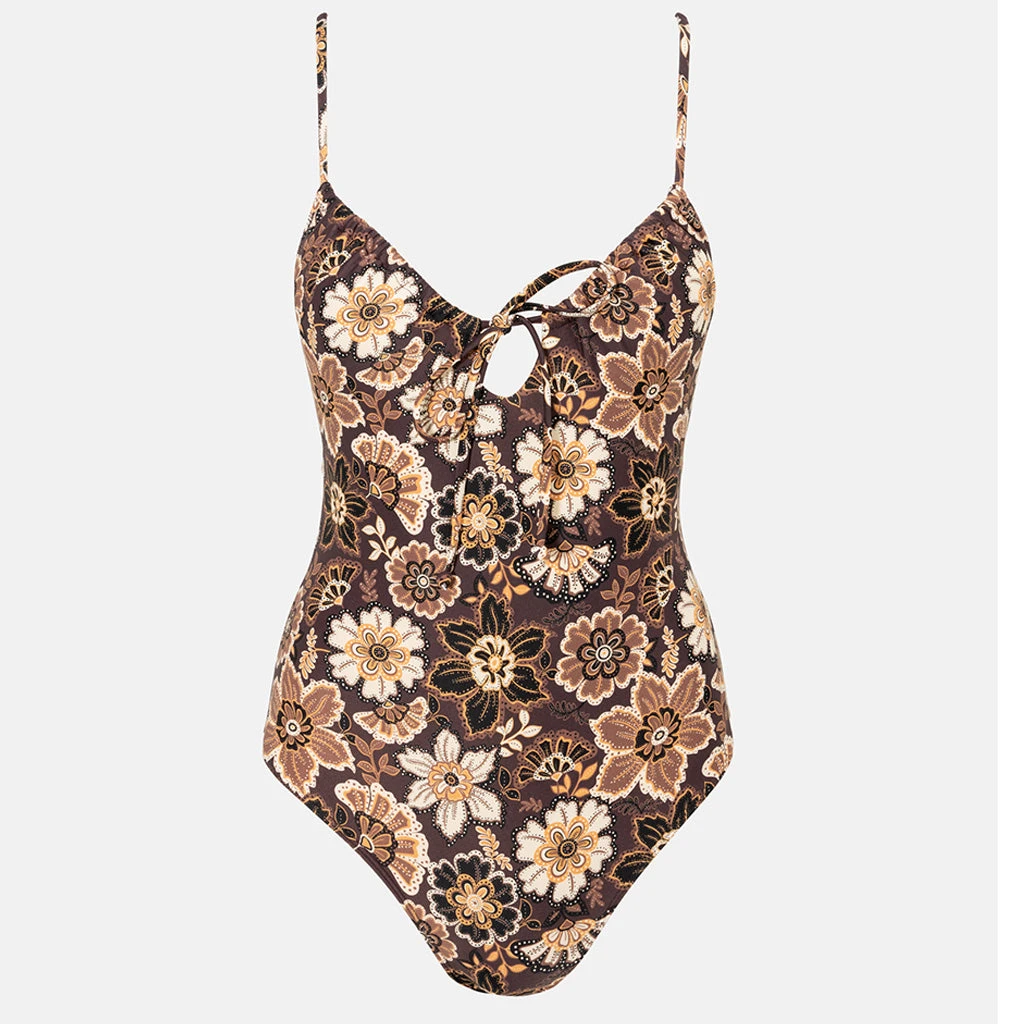 Rhythm Women’s Cantabria Floral Tie Front One Piece – Brown