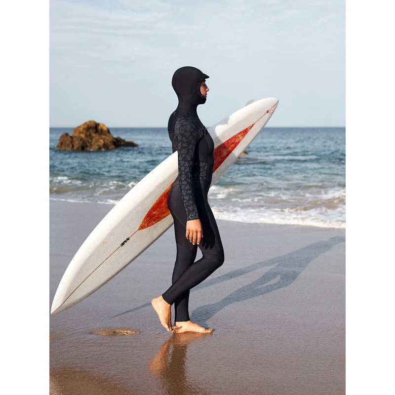 Featuring a tonal print on the upper body, this Swell Series 5/4 front-zip hooded wetsuit offers maximum flexibility and warmth for cold-water conditions with StretchFlight Eco construction and a WarmFlightยฎ thermal lining, plus Supratex knee pads for protection against rocks and reefs