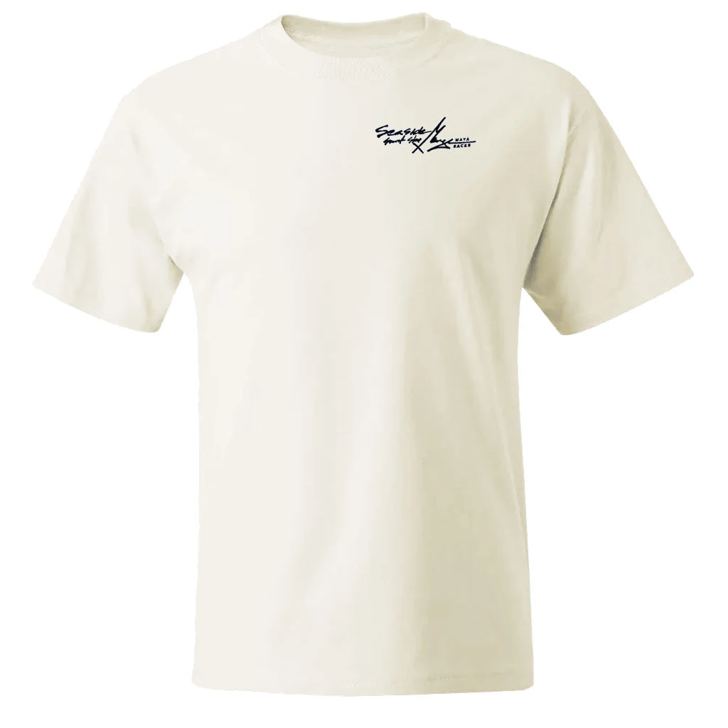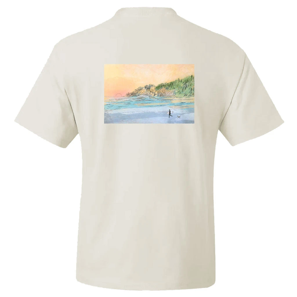 Seaside Surf Colab with Maya Sacks Artist Series screen printed on a tee