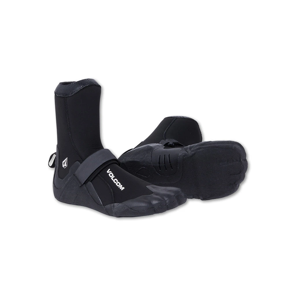 The Volcom 5mm Round Toe Booties are the ultimate cold-water accessory! Theyโre built with a single layer, rubber molded sole that keeps your toes toasty without sacrificing board feel. They also feature a neoprene padded velcro arch strap to keep everything locked in place and an internal split toe baffle. This offers the warmth of a round toe with the stability of a split toe. The no stitch, fused heel also makes these booties a breeze to put on and take off.ย