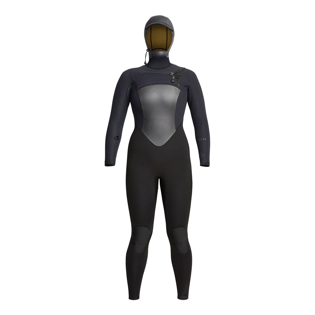All session long, the 2022 Xcel Drylock Womenโs 6/5mm hooded wetsuit cranks heat and performance. As the gold standard for womenโs surf wetsuits, the womenโs Drylock offers high-tech fabric and design in every square inch. Japanese Nanoprene Lite, made from limestone, makes the Drylock soft, stretchy, durable and light while also helping the planet. Even the Drylockโs inner and outer fabrics feel luxurious. The exterior features a sleek Channel Flex upper and a fine Channel Flex 2.0 lower. The lining is high pile, hollow fiber Celliant Black TDC in the chest and back, with Ultra Stretch IR in the rest of the suit. A smart entry system, with semi-dry zipper and magnetic closure, makes for an easier on/off while also preventing flushes. If youโre looking to prioritize comfort, heat and perfection, the 2022 Xcel Drylock Womenโs 6/5mm hooded proves the clear winner